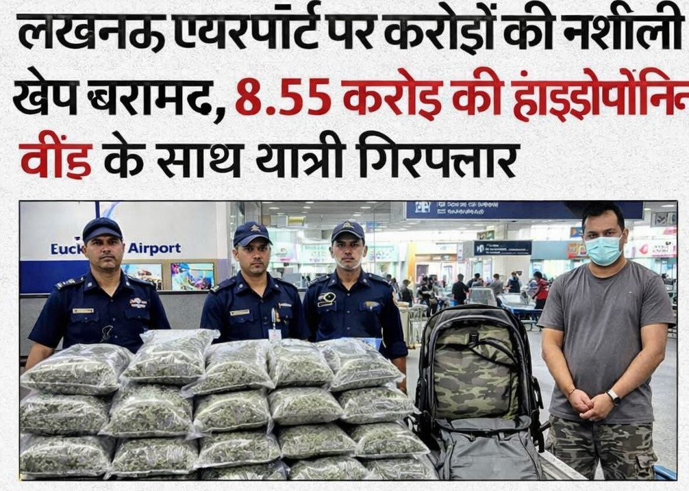 कस्टम अधिकारियों के अनुसार, फ्लाइट संख्या WY265 से लखनऊ पहुंचे यात्री के व्यवहार पर संदेह होने पर उसकी तलाशी ली गई। जांच के दौरान उसके काले-ग्रे रंग के बैकपैक से कुल 17 पैकेट बरामद हुए। इन पैकेटों में करीब 8.552 किलोग्राम हाइड्रोपोनिक वीड पाई गई, जिसकी अंतरराष्ट्रीय बाजार में कीमत लगभग 8.55 करोड़ रुपये आंकी गई है।