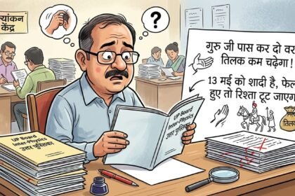 साहब! दहेज की वैल्यू गिर जाएगी…- यूपी बोर्ड के शेरों का कॉपियों में ‘दहेज बचाओ’ अभियान! वाराणसी (इंद्र यादव) यूपी बोर्ड की कॉपी चेक करने बैठे मास्टरों का दिमाग उस समय झन्ना गया, जब उ...